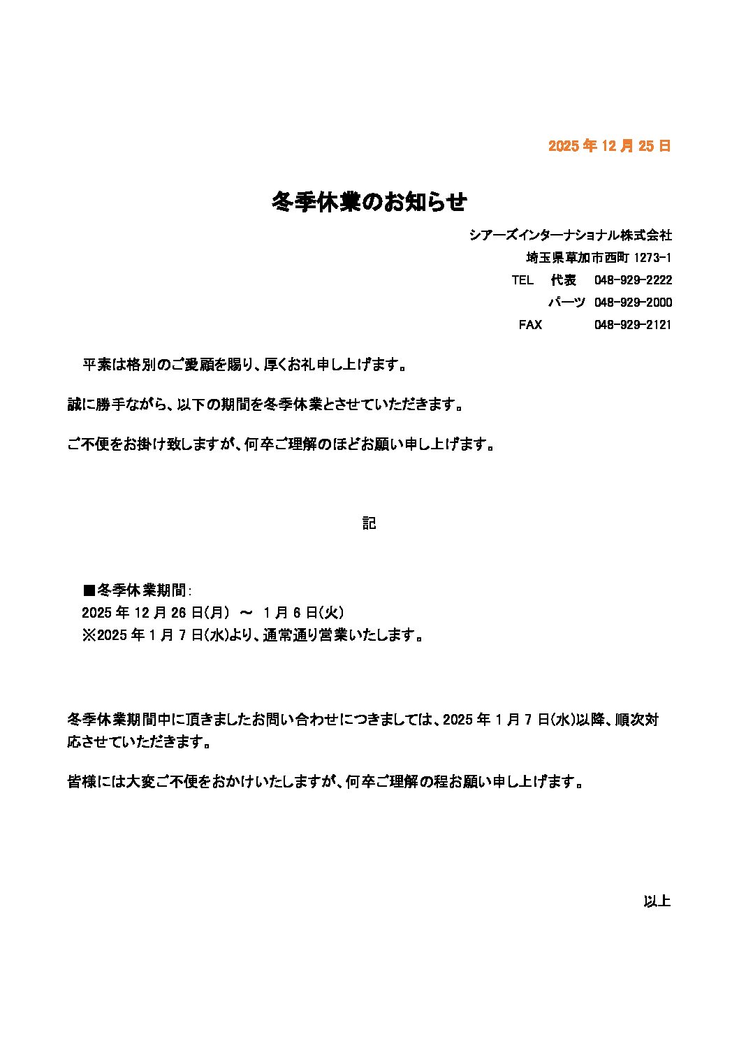 車両・部品入庫情報や納車紹介、その他お知らせを配信しています。