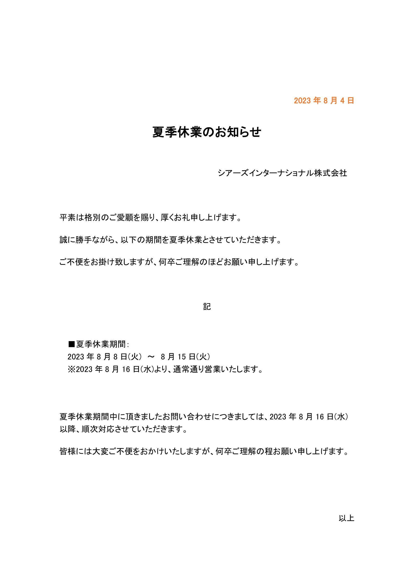 CAR SALES REPAIR PARTS SALES DELIVERY CAR ASSESMENT HOME CAR SALES REPAIR PARTS SALES DELIVERY CAR ASSESMENT DELIVERY納入実績 > DELIVERY > 2023年夏季休業のお知らせ CATEGORY HUMMER/ハマー お知らせ パーツ情報 閲覧するカテゴリーを選択 HUMMER/ハマーお知らせパーツ情報 お知らせ 2023年夏季休業のお知らせ 前の記事へ 納入実績トップに戻る 次の記事へ CONTACTお問い合わせ お電話でのお問い合わせ 048-929-2222 パーツに関するお問い合わせは 048-929-2000 まで 受付時間:10:00 - 20:00 火曜・第2水曜定休 フォームでのお問い合わせ お問い合わせフォーム 24時間受付。後日返答いたします